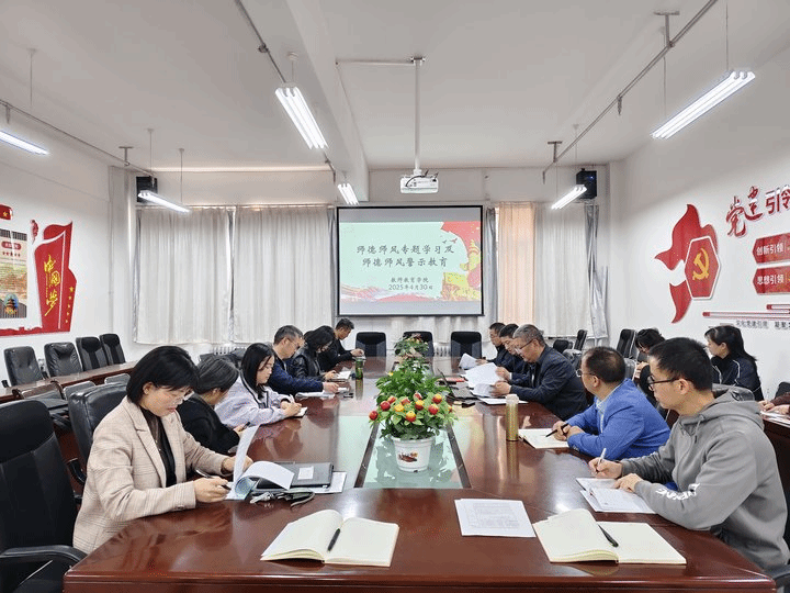 4月30日下午,学院召开了师德师风专题学习及警示教育学习会议。会议由学院负责人主持,学院全体在岗教职工参加了会议。