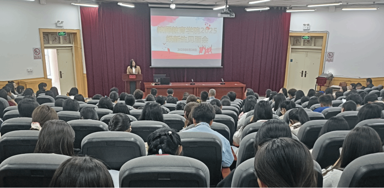 会议伊始,雒焕国院长向2025级新生表达了热烈欢迎,全面介绍了学院的发展历程以及在基层教师培养方面所取得的成果,并对同学们未来的学习与成长寄予了殷切期望。随后,马富成副院长介绍了学院的师资力量,段宝军副院长就研究生教育情况作了详细说明。三位专业负责人分别围绕课程设置、培养目标和就业前景等方面,对各专业进行了全面而深入的介绍。班主任代表杨菲老师结合学习与生活实际,为新生提出了具体建议与期望,为他们初入大学的旅程指明了方向。新生代表何英杰在发言中表达了对老师们辛勤付出的诚挚感谢,并期待在学院的悉心培养下不断锤炼自我、不负韶华。最后,王莉书记向全体新生提出殷切期望,鼓励他们勇于探索、积极尝试、敢于追梦。