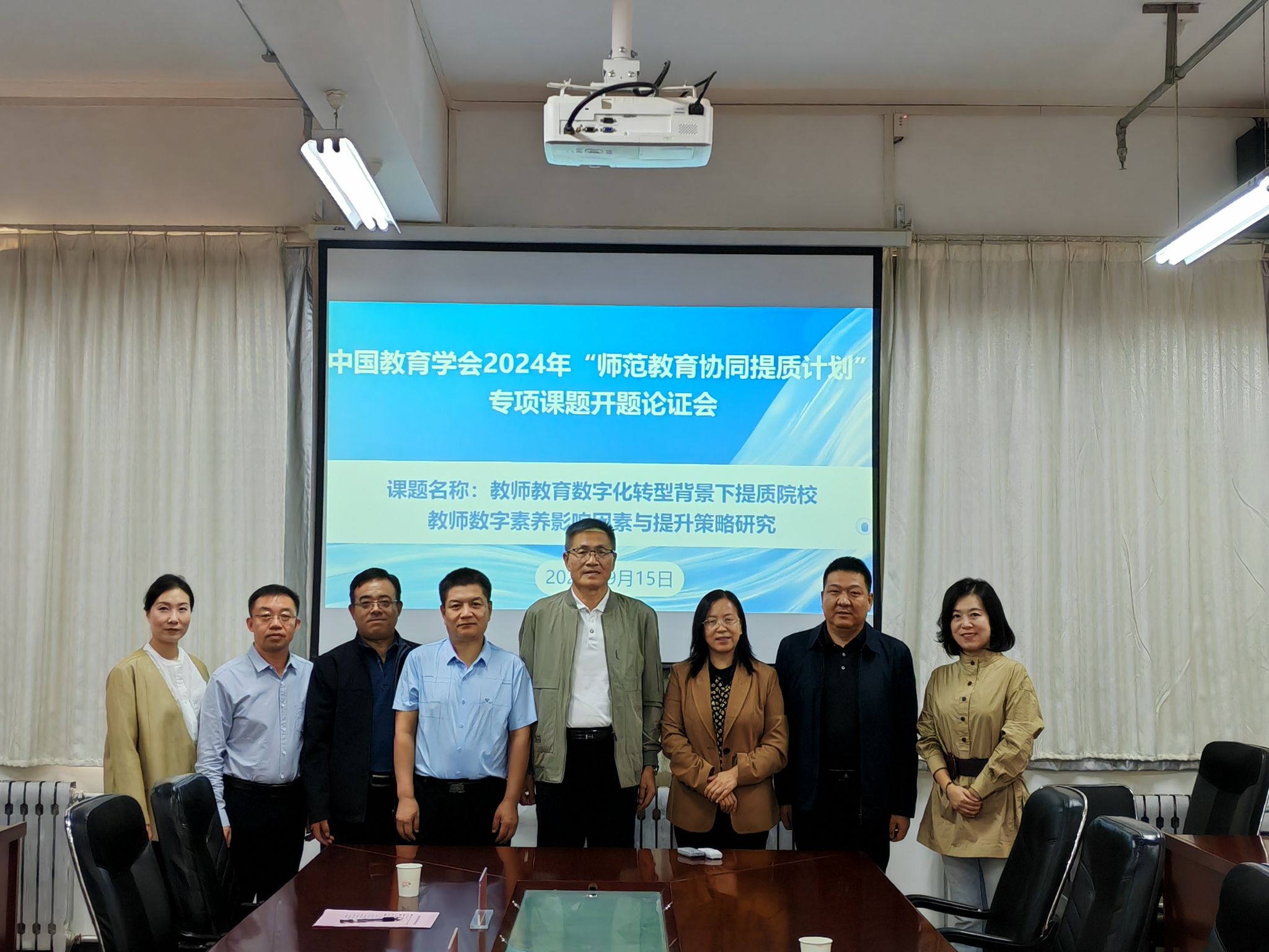 9月15日上午,必赢626net入口首页举行中国教育学会2024年“师范教育协同提质计划”专项重点课题《教师教育数字化转型背景下提质院校教师数字素养影响因素与提升策略研究》课题开题论证会。学院邀请中国教育学会学术委员靳建设教授、山东师范大学教育学部副部长冯永刚教授以及校内相关学科专家担任开题论证专家,学院负责人主持开题论证会。