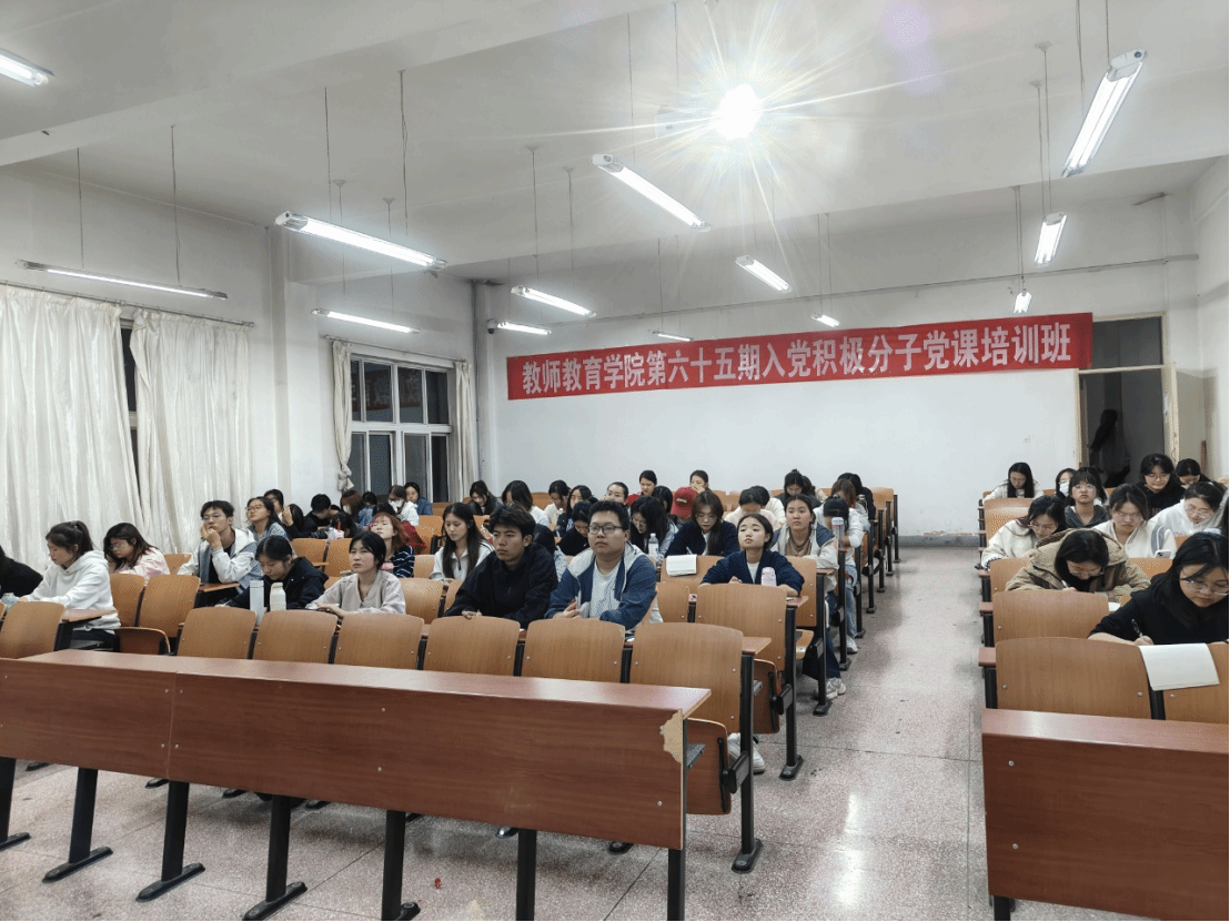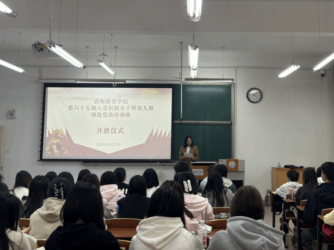 仪式在庄严的《中华人民共和国国歌》声中拉开帷幕。学院党委书记发表开班致辞,她结合党的二十大精神与教师教育专业特色,从“筑牢思想根基”“锤炼过硬本领”“践行育人使命”三个维度对参训学员提出要求。她强调,作为未来的教育工作者,入党积极分子与预备党员既要以理论学习筑牢信仰之基,深入学习党章党规与党的创新理论,也要将党性修养融入专业学习,在教育见习、志愿服务等实践中践行“为党育人、为国育才”的初心,以青年之力扛起培育时代新人的使命。同时,要求学员们坚持理论联系实际,将所学知识运用到学习、工作和生活中,以实际行动争取早日成为一名合格的共产党员,发挥好先锋模范作用。